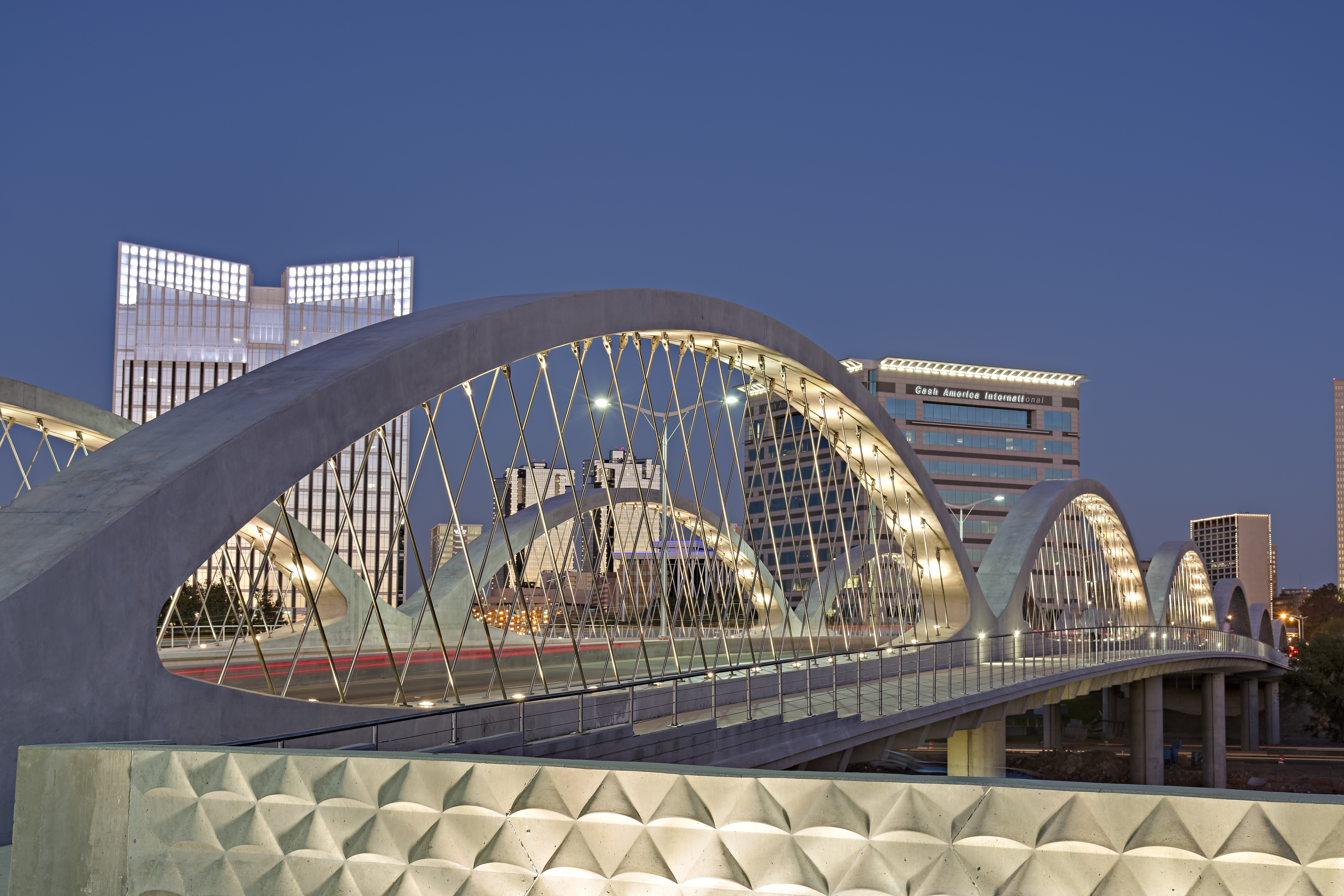 Texas Department of Transportation’s $24.1 million West 7th Street Bridge project improves safety and expands transportation options by replacing a nearly 100-year-old bridge with limited pedestrian and bicycling access. TxDOT’s new bridge includes a path for pedestrians and cyclists. Thanks to this connect between Fort Worth’s downtown and the 7th Street urban village, the community can now develop and grow with a safer connection between the two neighborhoods.