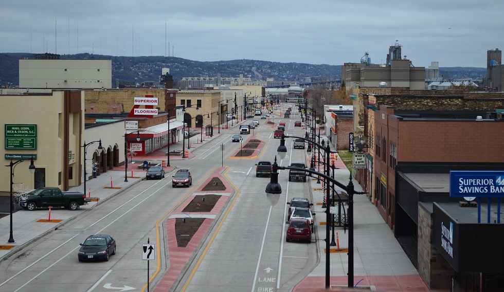 Wisconsin Department of Transportation’s $13.4 million WIS 35 Project improved conditions for residents in downtown Superior through a newly designed streetscape. The project balances the needs of an urban downtown and personal mobility by improving safety conditions, increasing visibility at intersections, and providing left turn lanes for motorists. The local transit system now has improved bus bays encouraging multi-modal travel and safer conditions for pedestrians, transit users, and motorists.