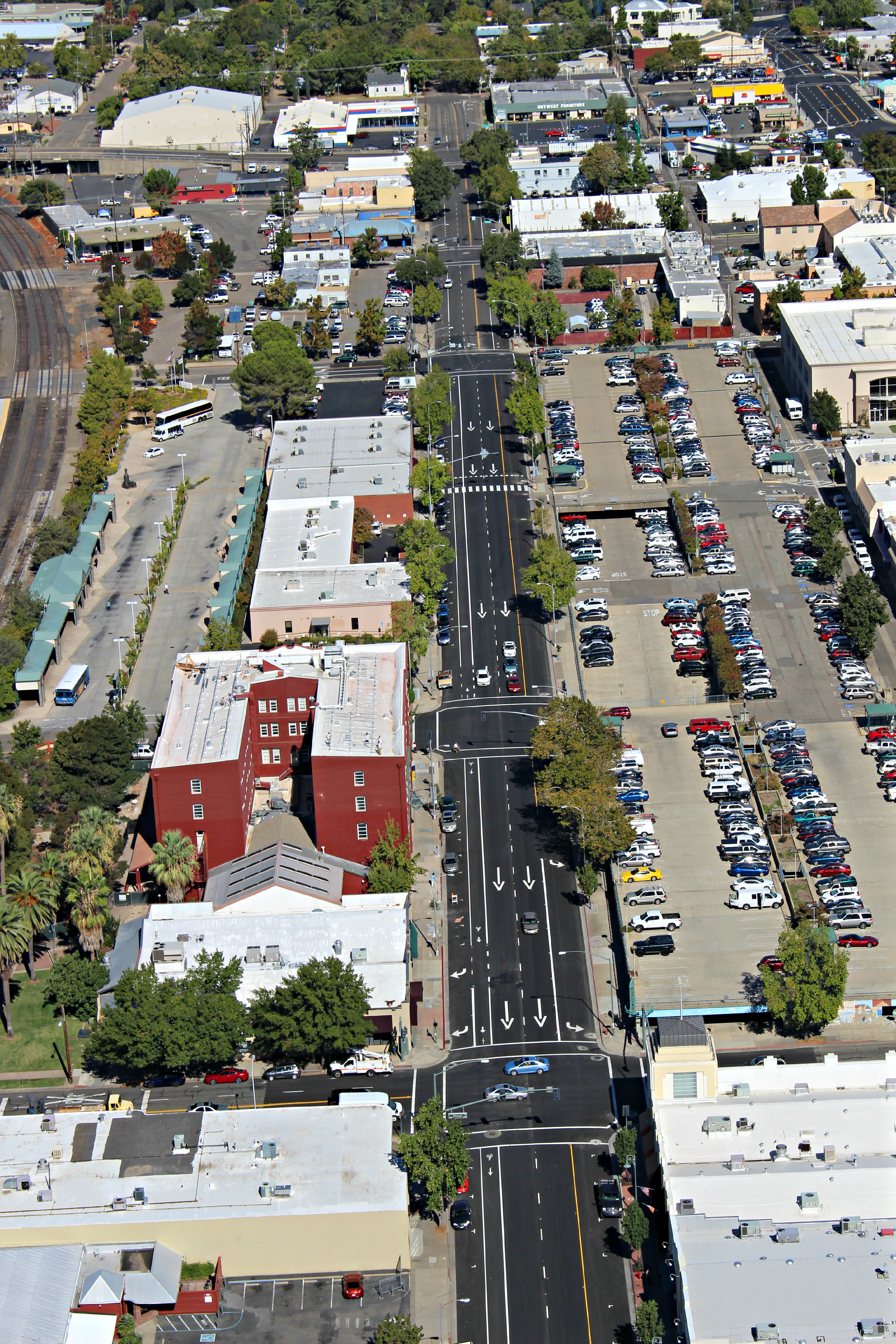 California Department of Transportation’s $3.2 million Downtown Redding Pavement Preservation and Bike Lane Project improved multi-modal transportation options and safety conditions in Redding while reducing traffic congestion. Originally planned as a pavement recycling project, Caltrans and local officials decided to add bike lanes after overwhelming support from the public to create friendlier street for bikes. The changes provided multi-modal connectivity the downtown area.
