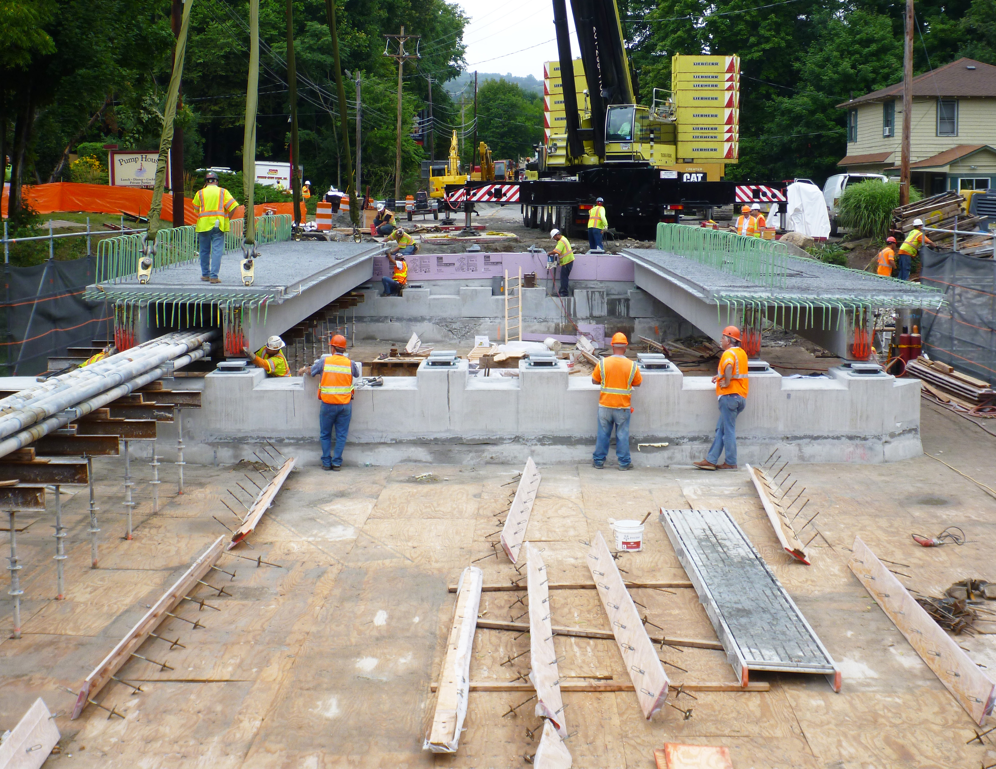 The New Jersey Department of Transportation’s bridge project at Route 46 over the Musconetcong River replaced a 90-year-old bridge connecting three municipalities at a cost of $3.4 million, while disrupting traffic for only 10 days instead of the typical two-year construction schedule. By using pre-fabricated bridge pieces, construction of the new bridge at the project site had minimal impact on traffic, and limited disruptions to local businesses and historic buildings nearby. The new bridge improves safety conditions for 13,000 vehicles and pedestrians that utilize the crossing daily. Community members commended NJDOT for its extensive public outreach campaign throughout the design and construction process.