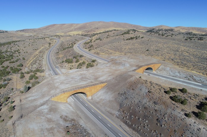 Animal-vehicle collisions result in a yearly average of over 500 reported crashes in Nevada. These collisions cost Nevada taxpayers over $19 million annually, while causing both human injuries and fatalities as well as the loss of wildlife. Along Interstate 80 near Pequop Summit in rural northern Nevada, such collisions posed a major threat to both human and animal safety. To reduce their frequency, Nevada DOT constructed two new wildlife overpasses and 20 miles of fencing. This $18 million project involved integrating six existing structures into the fencing layout and connecting the new fencing to two low-use vehicle underpasses and four medium cattle underpasses to provide an additional six crossing opportunities for wildlife through the entire 10-mile corridor. The wildlife fencing was terminated at two of the cattle underpasses to allow for one last additional opportunity for safe passage before animals encounter the interstate surface again. By reducing habitat fragmentation with these wildlife crossing improvements, it helps to increase the population of numerous species through access to limited resources and protect endangered species. This project also impacted the local economy. With the appropriate permits, cattle can be moved across these structures between various grazing allotments by ranchers, reducing the risks and costs associated with moving cattle across the interstate, potentially saving tens of thousands of dollars for local ranchers. The long-term economic benefit comes from a reduction in costly animal-vehicle collisions, infrastructure damage, human injuries and fatalities, plus preservation of wildlife near and around Pequops Summit.
