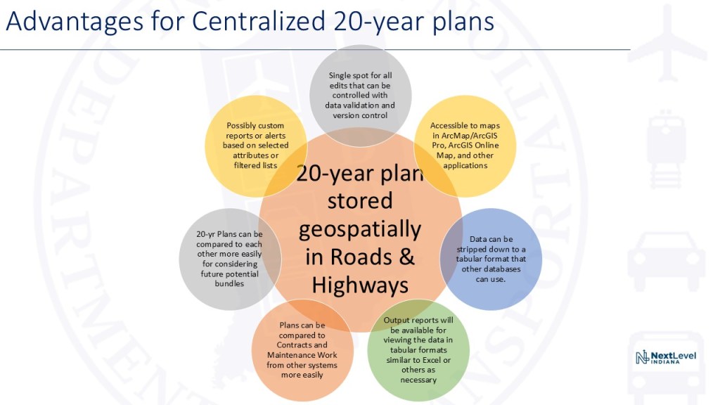 Indiana Department of Transportation’s 20-Year Asset Management System tracks the history and future needs of every road and bridge asset in one place. Originally created to give leadership a clear view of asset plans, the system has evolved into a tool for managing assets, visualizing long-term plans, and identifying potential project conflicts—such as overlapping detours.
