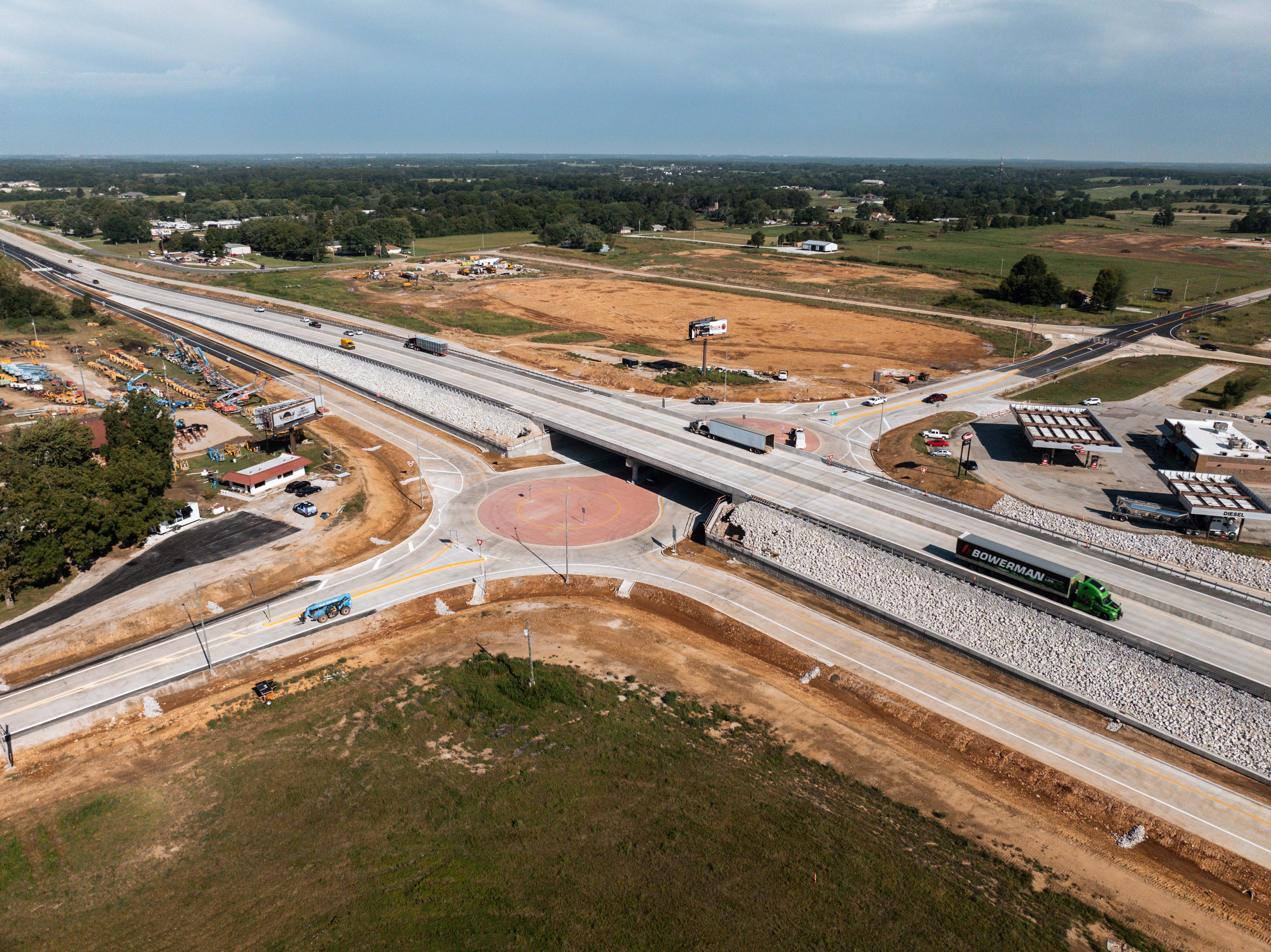The Missouri Route 125 and U.S. Route 60 Intersection Improvements project addressed serious safety concerns by replacing a high-speed signalized intersection with a new interchange. Led by the Missouri Department of Transportation, the $20.4 million project reduced crashes, eased congestion, and improved traffic flow for Rogersville residents, commuters, and businesses.