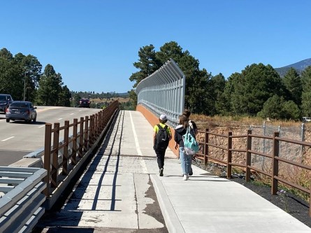 The Arizona Department of Transportation improved safety for drivers, bicyclists, and pedestrians – especially school children who walk across to and from a neighboring school in Flagstaff – through the replacement of the Fourth Street Bridge over Interstate 40. In partnership with the City of Flagstaff, the $13.9 million Fourth Street Bridge project widened the bridge over Interstate 40: adding capacity for vehicle as well as barrier-separated pedestrian and bicycle facilities. The project also added a northbound multi-use path and access to the Flagstaff Urban Trail System. The previous bridge had single-span bridges in eastbound/westbound direction, with pedestrians and bicyclists competing with traffic to cross the bridges and facing traffic congestion daily in morning and peak afternoon travel times. Due to those safety and mobility improvements, additional commercial and residential developments are being planned, allowing the community to grow.