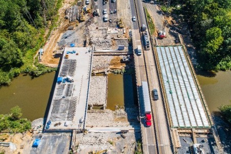 Improving safety and saving time, the Arkansas Department of Transportation completed a $13.15 million project to reconstruct main line interstate bridges using an innovative technique in Caddo Valley. The bridges were constructed using temporary supports off the shoulders of Interstate 30 while, simultaneously, crews built permanent foundation for the new bridges beneath the existing structures – all done in just 178 hours for the westbound bridge and 246 hours for the eastbound bridge. Altogether, the demolition of the existing bridges as well as construction and installation of the new bridges occurred in record time. This innovative approach allowed The Arkansas DOT to complete this project quickly and get travelers back on the road with minimal inconvenience.