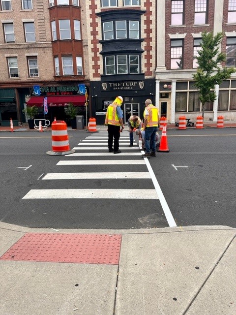 Connecticut, like many states, experienced significant increases in pedestrian and bicycle fatalities on roadways in the wake of the COVID-19 pandemic. To reverse that trend, the Connecticut Department of Transportation partnered with three municipalities and their regional planning organizations to participate in Smart Growth America’s Complete Streets Leadership Academies. Quick-build projects helped local leaders identify problem areas and test low-cost solutions, using before-and-after data to verify project success. For example, a $45,000 project in Waterbury, CT, reduced speeds on Grand Street, increased driver yield rates to pedestrians, and improved parking organization. Delivery vehicles also benefited from better loading/unloading space. Such projects demonstrated potential solutions, improving residents’ and travelers’ understanding of benefits like travel times, parking, and safety.