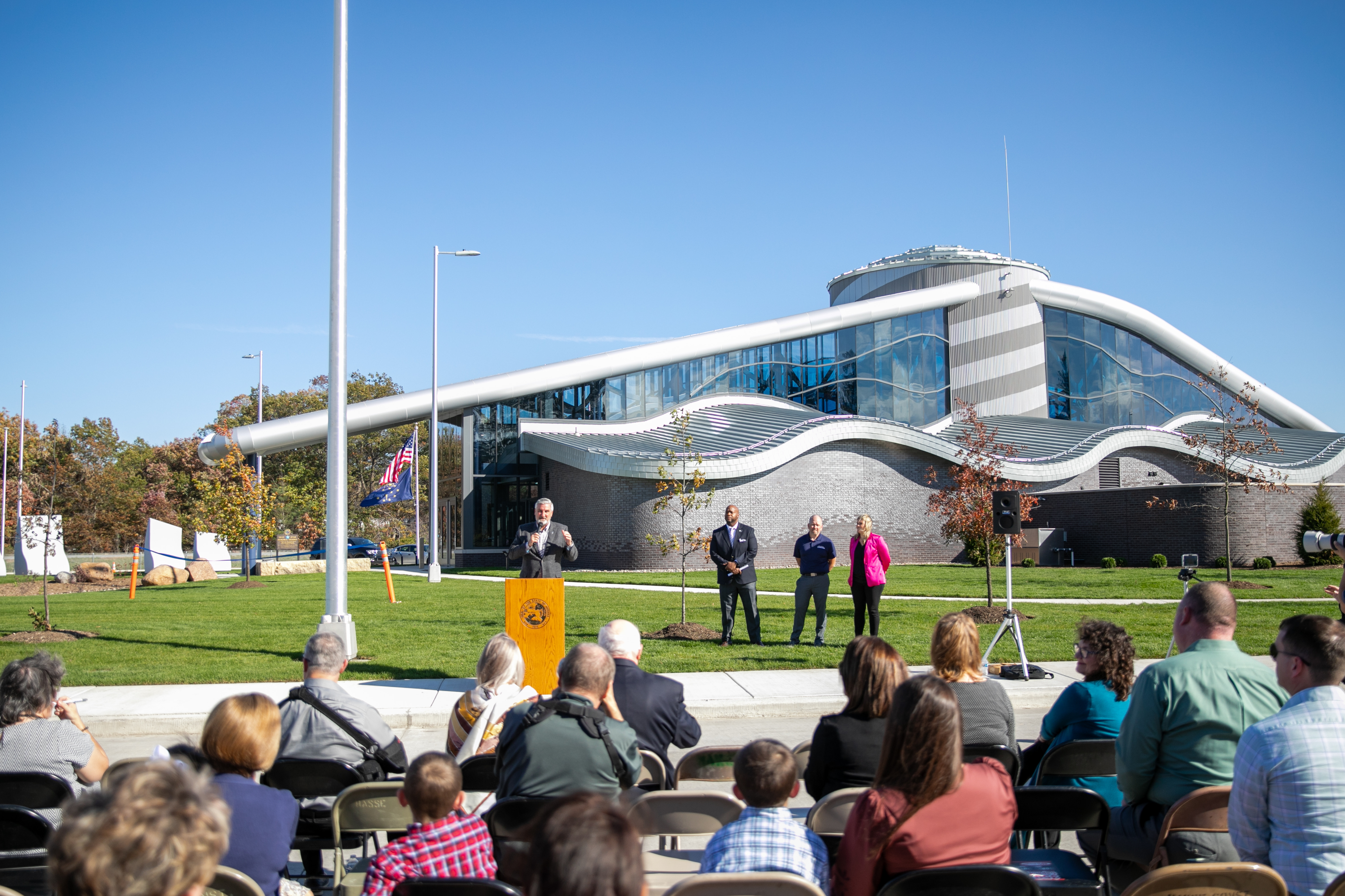 The Indiana Department of Transportation is implementing a 10-year plan to upgrade interstate rest areas and welcome centers across the state – an effort focused on modernizing facilities, expanding parking, and adding new semi-trailer parking areas. The $36.4 million Kankakee Welcome Center is the second site completed under this program; replacing a rest area originally built in 1988. The new center features two Americans with Disabilities Act or ADA-compliant family assist restrooms and a family assist shower, designed to accommodate travelers assisting family members with personal hygiene needs – an amenity suggested by travelers and essential as more of the public ages. Located on southbound I-65 in northwest Indiana, the Kankakee center offers enhanced security, accessibility, and inclusivity. The shower includes a flushable floor drain and bench, making it easier for families with children or older adults to manage hygiene issues discreetly. The family assist restroom provides a safe, private space for those traveling with young children, older adults, or anyone needing extra care. Due to the popularity of these features, they are now integral to INDOT’s future designs. The center also includes expanded semitrailer parking with 150 spots and dedicated restroom facilities for truck drivers, featuring four ADA-compliant restrooms each.