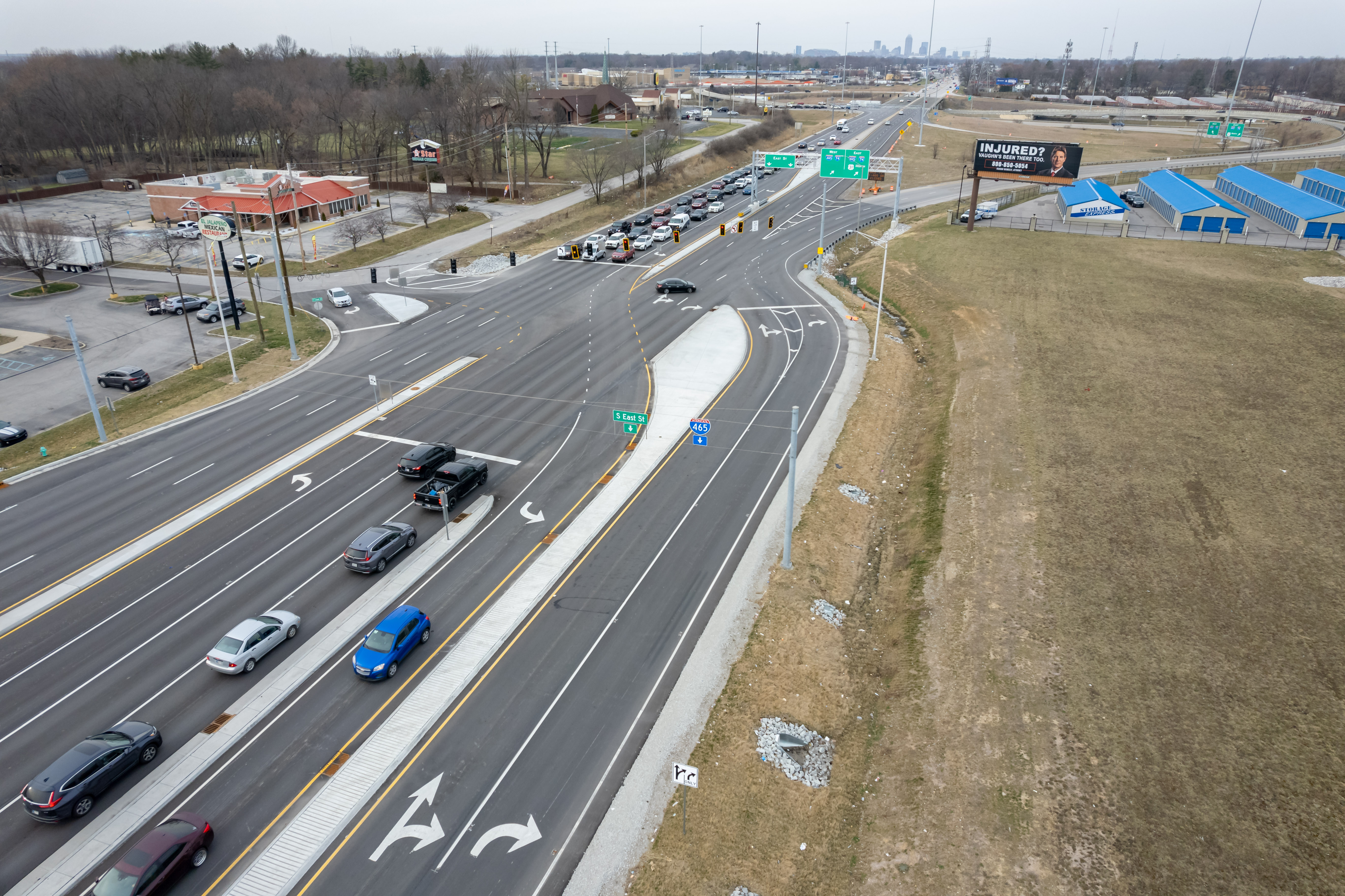 INDOT’s construction of the displaced left turn (DLT) intersection has alleviated congestion and reduced delays experienced by travelers using U.S. 31. This $4.9 million project has successfully reduced congestion in the area while also improving safety for motorists traveling on both U.S. 31 and I-465. Delays experienced by travelers have been minimized, while queueing onto the interstate has been eliminated. The DLT has improved safety by eliminating the need for motorists to navigate left turns within the intersection. Furthermore, the DLT has reduced traffic delays by allowing left-turning traffic and through traffic to proceed through the main intersection simultaneously, eliminating the extra time traditionally needed to accommodate left turns at a standard intersection.