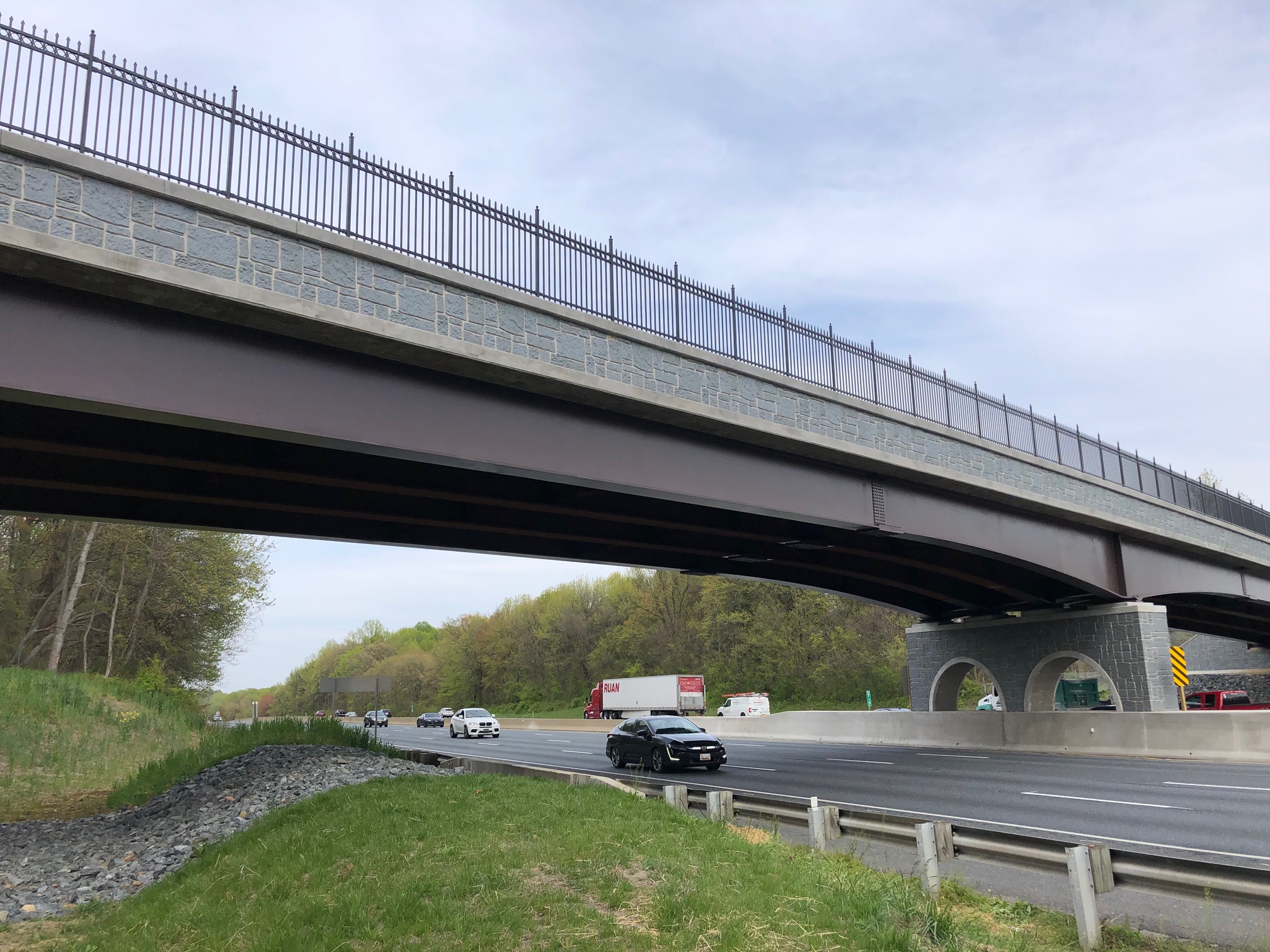 The Maryland Transportation Authority, a division of the Maryland Department of Transportation, kicked off the massive I-95 Express Toll Lanes Northbound Extension project by replacing Bradshaw Road over I-95. This replacement is the first step in increasing safety and convenience for drivers. MDTA reconstructed the overpass to allow for future “follow-on” structures of the I-95 Express Toll Lanes Northbound Extension. The semi-integral abutments and corrosion resistant reinforcing were a first for MDTA and will save money in maintenance costs over the life of the bridge. The agency also completed the $7 million project ahead of schedule despite deploying a detour for motorists during construction.