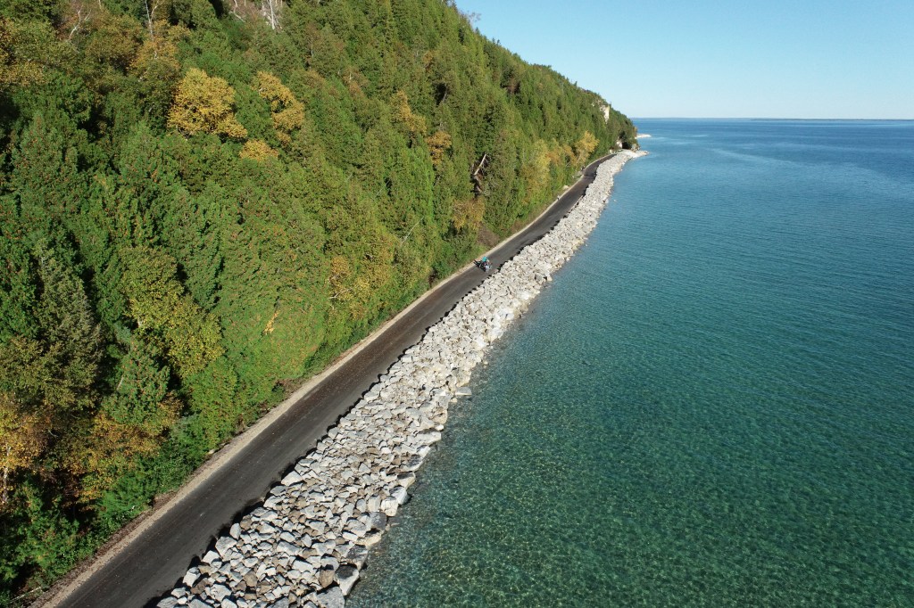In recent years, water levels surrounding Mackinac Island have risen sharply, causing erosion for M-185. This 8-mile stretch is the only state highway in Michigan that does not regularly allow automobiles—mostly just bicycle, pedestrian, and horse traffic. To address these concerning rising water levels, Michigan DOT completed a $5.48 million project focused on shoreline erosion and pavement repairs to ensure access to the route around the island for many years to come. The project also ensures safe emergency and fire access to historic island homes and helps the local economy, as more than 600,000 people visit the island each year.