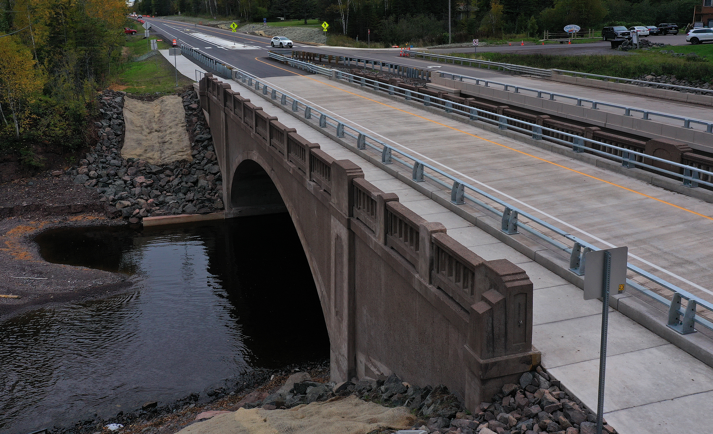 This $5.6 million Minnesota Department of Transportation project included rehabilitating the historic Stewart River Bridge and built a new inland bridge. Northbound traffic now uses the historic bridge, while southbound traffic uses the new bridge, which features a right turn lane into Betty’s Pies. Upgrades to the historic bridge include a bike and pedestrian path, while the bridge’s new road alignment created a left turn lane off Highway 61 into Betty’s Pies; a bakery reportedly home to the best pies in Minnesota. A marked pedestrian crossing was added to improve safety for tourists and access to the lake side of the historic bridge. These enhancements include Americans with Disabilities Act-compliant turn lanes and pedestrian facilities, improving safety for all users.