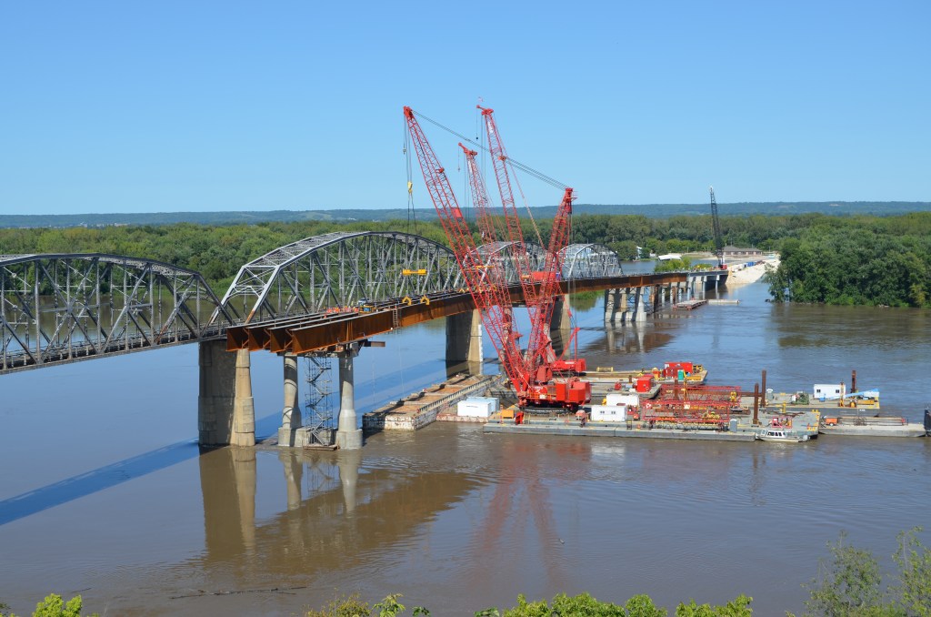 Reliability for commuters was becoming an issue on the Champ Clark Bridge, which spanned the Mississippi River on U.S. Route 54 and connected Louisiana, Mo., and Pike County, Ill. The bridge had been closed for flooding events several times over the last 10 years, forcing commuters and commercial businesses to travel an additional 77 miles to cross the river, and the bridge was often closed for repairs and inspections. Missouri Department of Transportation worked with Illinois Department of Transportation to replace the previously narrow bridge through a $60 project that more than doubles the original bridge’s width and eliminates the 40-ton weight restriction, while adding accommodations for pedestrians and bicyclists to increase travel options and economic opportunities in the region. In addition, the project spurred community involvement by including high school students interested in STEM to participate in a challenge to design, estimate, and present proposals for an interpretive panel made of material from the original bridge. The panel, now permanently displayed in a park overlooking the bridge, fulfilled an environmental commitment to memorialize the historic bridge for future generations.