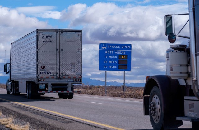 Led by the New Mexico Department of Transportation, the Interstate 10 Truck Parking Availability System (TPAS) project aids truck drivers in finding safe and efficient parking along this specific highway corridor. Costing $2.7 million, TPAS detects available parking along the route and relays real-time information to drivers, reducing time and fuel spent searching for parking and the risk of parking in unsafe spots or driving while fatigued. Electronic road signs and the state’s 511 system now guide drivers to parking at six rest areas along I-10 in New Mexico. Additionally, the state collaborates with mobile application developers to integrate TPAS information directly into trucking-specific apps. Before the implementation of the TPAS system, drivers often struggled to find authorized parking. This frequently resulted in truckers parking in unauthorized or unsafe locations, such as along highway shoulders, entrance and exit ramps, or local streets. The search for parking also forced many to exceed their hours-of-service drive time limits. By monitoring, collecting data, and communicating real-time information about truck parking availability, TPAS enables drivers to plan by knowing the distance to the next safe pull-off area, the location of restrooms, and the number of available parking spaces.