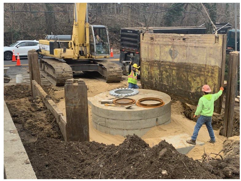 The Northport Harbor Highway Runoff Mitigation project eliminated the potential of any source of known sanitary sewage from entering the drainage system maintained by the New York State Department of Transportation and discharging into shellfish-certified waters of Northport Bay on Long Island. The project also included replacing failing sediment basins with a new hydrodynamic storm water treatment device to enhance water quality in the bay. This improvement ensures cleaner tidal waters for primary contact recreation and support for healthy shellfish beds in Northport Bay. The $750,000 project preserved and repaired the existing 36-inch NYSDOT-owned drainage pipe using trenchless technology, avoiding excavation and major site disturbance. Open excavation on the steep slope would have required steel sheeting, forest clearing, and significant disruption to marina operations and the public. As a result, the public now benefits from cleaner tidal waters for recreation and healthy shell fishing beds in Northport Bay.