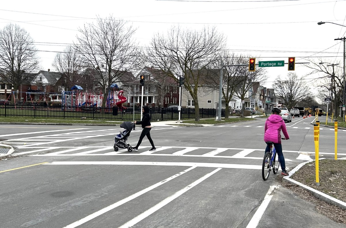 This $6.7 million project transformed a 2.4-mile stretch of US Route 62 in Niagara Falls, NY. This New York State Department of Transportation initiative reduced travel lanes from two to one in each direction and added a dedicated bike lane. Curb bump outs were installed as traffic calming measures, enhancing pedestrian safety by shortening crossing distances and deterring cut-through traffic. The City of Niagara Falls receives over 800 million visitors annually. Businesses in the project area, including Main Street (west end), Pine Avenue (up to one block north and Walnut Avenue), and 19th Street, will benefit from the improved pedestrian and bicycle facilities. Additionally, the Superintendent of Police reported a 50% reduction in accidents and fewer speeding complaints.