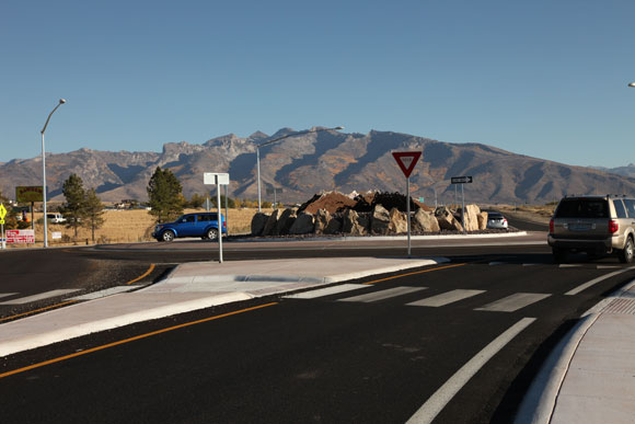 WINNER: On Time – Small Project A fast-growing gold-mining town was given relief from traffic congestion in the form of $2 million Spring Creek Roundabout project that eliminated a critical choke point. The project not only increased safety, it won over new fans for roundabouts. State Route 227 is the only all-weather entrance and exit in and out of the small community of Spring Creek, where the population has been growing due to a gold mining boom in the area. The project built the area’s first roundabout at the intersection with Spring Creek and Licht Parkways. The Nevada DOT worked with the contractor and the community to build the project in a three-month window while school was out for the summer. NDOT used local media to inform motorists of lane changes. And NDOT built community support for the project by using local high schoolers to design and build the roundabout’s centerpiece. |