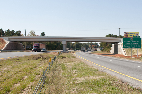Quick work by the South Carolina Department of Transportation kept driver inconvenience to a minimum and saved the Interstate 85 overpass bridge in Gaffney, which was damaged by a tractor trailer. The $3.4 million bridge was completed just 152 days after the accident occurred (about a month ahead of schedule), largely due to the emergency design-build project delivery plan, and was paid in full through federal emergency relief funds. SCDOT also worked with the Federal Highway Administration to expedite the process, saving motorists from construction delays and safety hazards with a damaged overpass. |