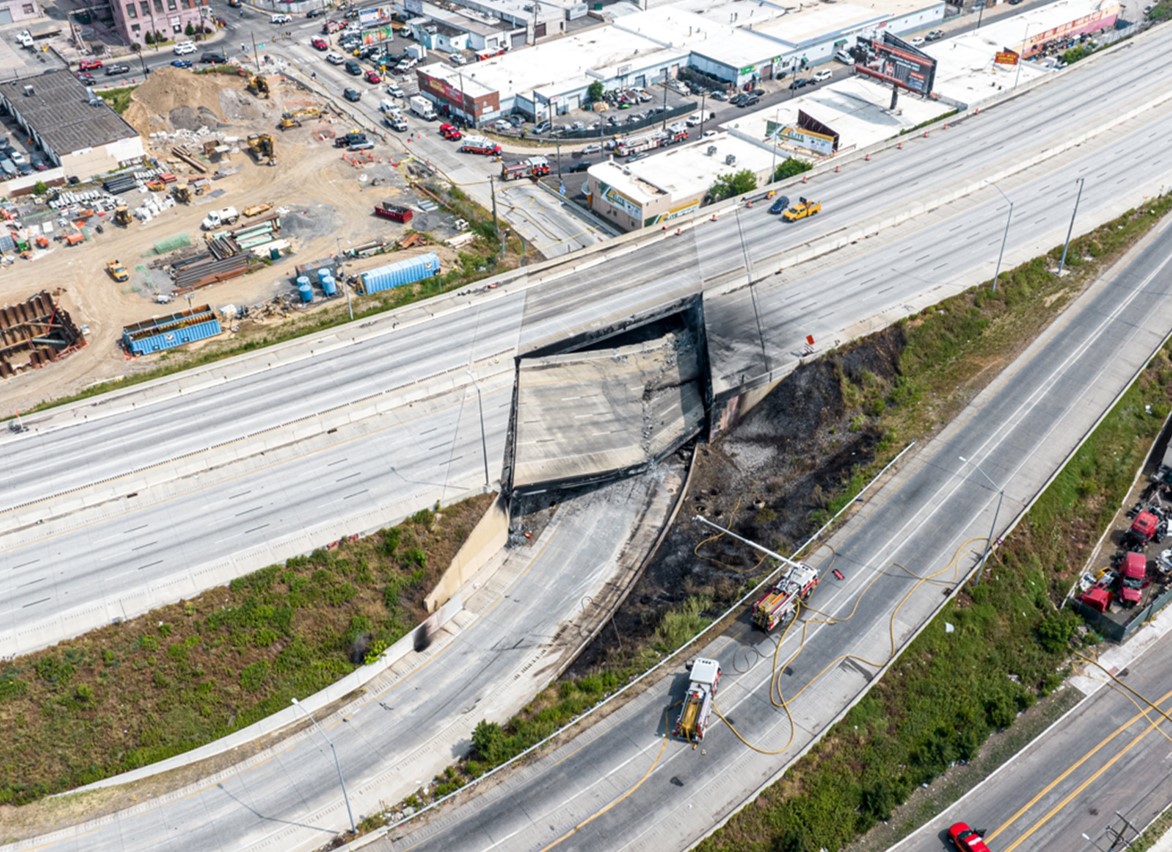 On June 11, 2023, a fuel tanker carrying 8,500 gallons of gasoline crashed on the northbound Cottman Avenue off-ramp from I-95 in Philadelphia. Since this highway carries 160,000 vehicles daily, PennDOT had to act swiftly. To expedite repairs, the project installed a temporary mechanically stabilized wall system that incorporated recycled foamed glass aggregate. This $4.5 million project was a first for PennDOT in an emergency. Crews worked day and night to reopen the highway, for if I-95 had been shut down for a more extended period, the economic impacts would have been tremendous and potentially devastating due to the inability to move goods and services and the costs of additional congestion created by the diverted traffic on alternate routes. This 24/7 repair effort helped reopen the highway on June 23, just 12 days after the crash.