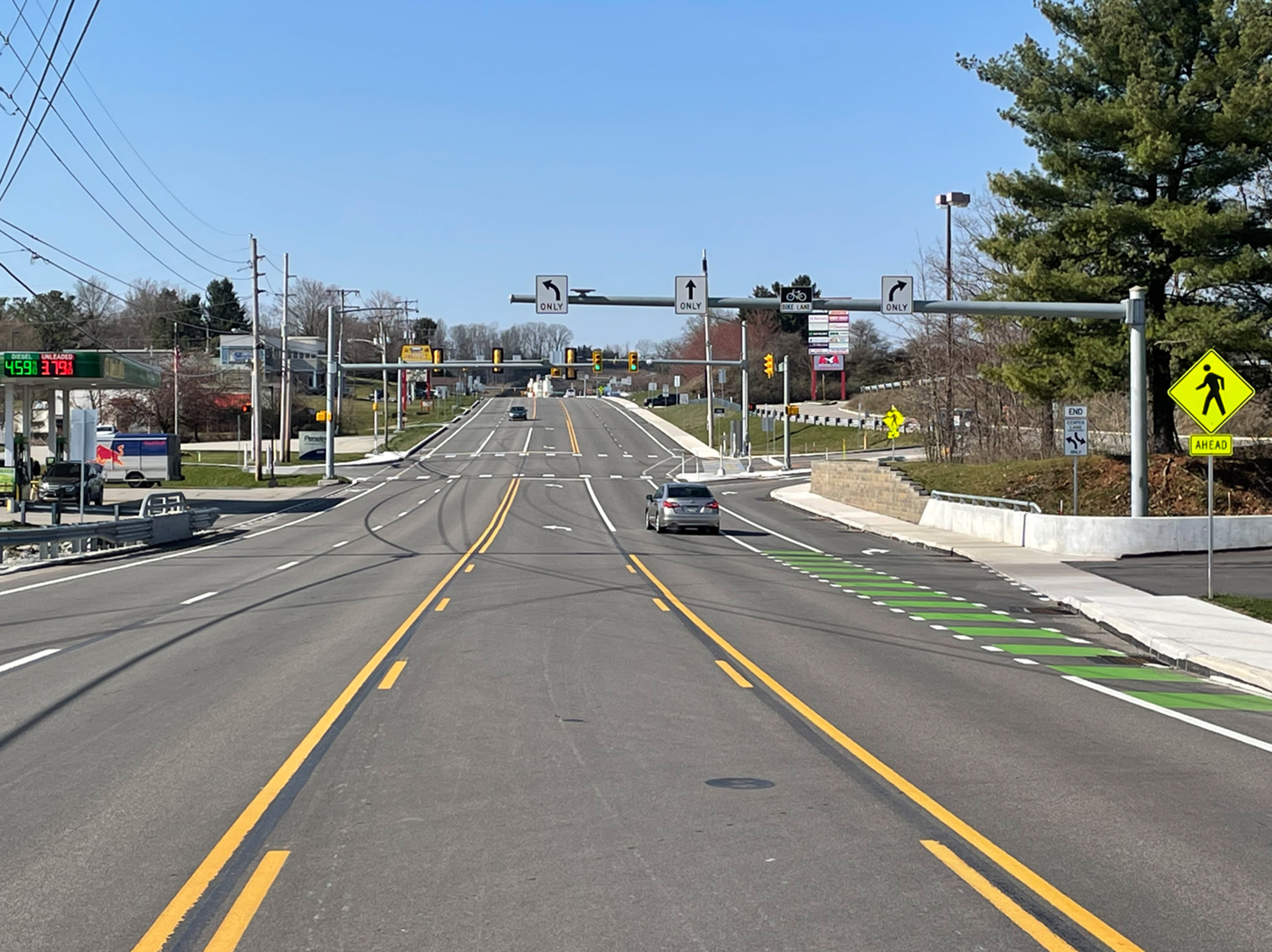 The Oakland Avenue Improvement and Expansion project has significantly eased congestion and enhanced pedestrian and cyclist safety along the Oakland Avenue segment of SR 286. Led by the Pennsylvania Department of Transportation, this $18.7 million project widened SR 286 to meet current design standards and provided safety and multimodal operational improvements throughout the corridor. The project included the enhancement of 11 intersections, six of which are now signalized. Additionally, the project updated all guide rails, signage, pavement markings, and safety features to current standards, with drainage and stormwater facilities extended and added as necessary. The project also built new bicycle and pedestrian accommodations, including new sidewalks and bicycle lanes in both directions. All of those improvements significantly benefit all system users while also improving congestion management, boosting multimodal connections, and enhancing safety features. The project also included construction of a new bridge over the waterway McCarthy Run; a structure designed to handle a higher volume of water, thus reducing the risk of flooding and improving overall drainage in the area.