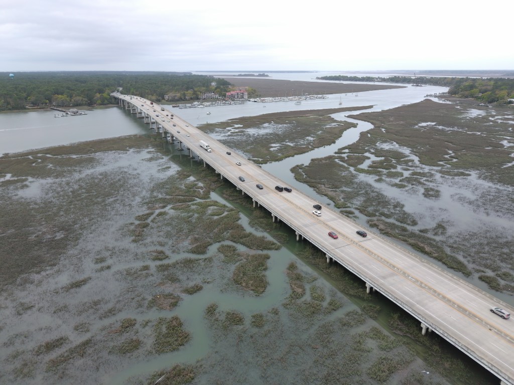 The toll on the Cross Island Parkway along US 278 in Hilton Head, SC, expired due to changes in state law. Following the toll’s expiration, it became crucial to modify the toll plaza to accommodate increased traffic and significantly enhance safety within the corridor. Additionally, the asphalt roadway surrounding the toll plaza had nearly reached the end of its lifecycle and required substantial repairs. The South Carolina Department of Transportation’s $13.25 million Cross Island Parkway project carefully considered the area’s unique environmental factors, protecting landscaped areas and wetlands throughout construction, while also implementing solutions to mitigate future environmental impacts. The SCDOT also made significant upgrades to the Cross Island Parkway as well, including the addition of landscaped biking and walking trails along the southern portion of the parkway. Over four acres of excess asphalt pavement were removed during the renovation, and the roadway was brought up to modern quality standards. These improvements reduced runoff into adjacent marshes and Broad Creek, with grass swales incorporated into the final design to filter out roadway pollutants. Additionally, the elimination of the toll allows vehicles to travel at safer speeds.