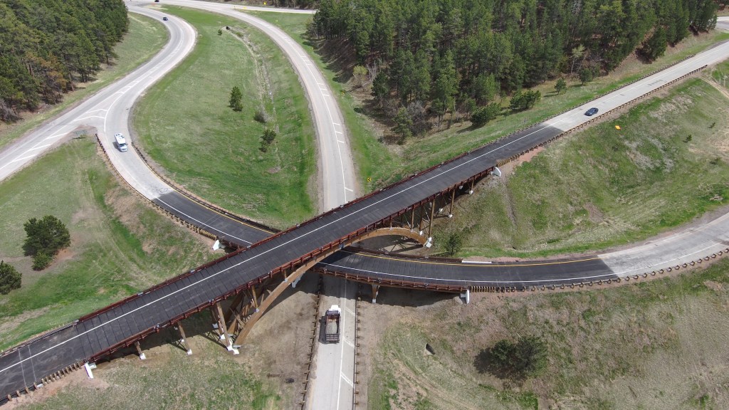 The Keystone Wye interchange consists of two timber bridges that provide access to Mount Rushmore. This $4.5 million project aimed to address several issues with the existing deck, bridge railing, and approach roadway for the bridges, with the goal of improving safety and meeting current load-carrying requirements. Despite the challenges posed by the need to preserve the iconic timber superstructures of the two bridges, the South Dakota DOT wrapped up the project in a timely manner to minimize disruptions during the tourist season. To meet its project delivery deadlines, the agency worked to ensure that the bridge’s capacity met current standards while preserving its historical character. By using concrete decks and steel rails in place of timber, the agency aesthetically improved South Dakota’s most famous bridges and extended their service lives — meaning tourists can continue to visit the Black Hills region, which is home to Mount Rushmore, and thus continue to provide a boost to both the local and state economy.