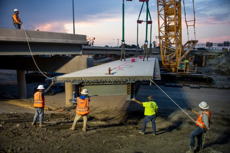 The Texas Department of Transportation faced a difficult choice in determining how to replace two rapidly deteriorating bridges on I-635 over Seagoville Road in southeast Dallas County. The bridges – which originally opened in 1969 – stand at the heart of a major convergence of I-20, I-635, and US 175; all serving the rapidly growing North Texas area. Traffic volumes compounded the challenge. The northbound and southbound I-635 main lane bridges carry about 154,000 vehicles daily, with 11 percent of those vehicles comprised of large trucks. TxDOT decided to replace the bridges using Accelerated Bridge Construction methods – techniques the department has used for many years, but never on this scale. With bridge sections built months ahead of time in an adjacent field, TxDOT assembled two entire I-635 bridges in just two weekends. Those new $9.2 million bridges now allow for greater driver safety and better address the growing traffic volumes in the Dallas area.