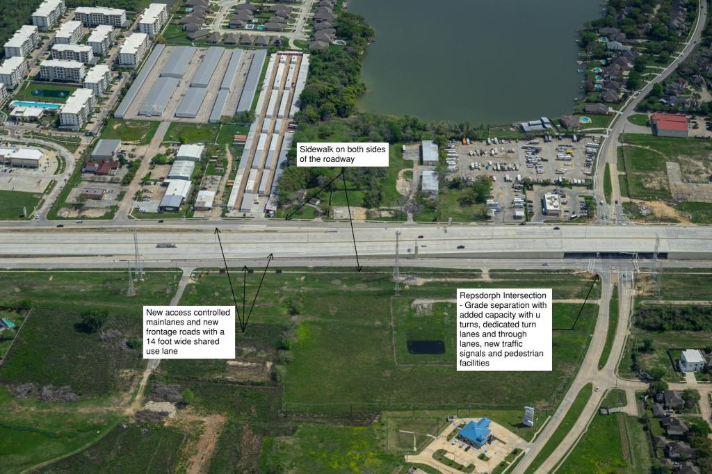 The Texas Department of Transportation’s $217 million State Highway 146 expansion project in Houston constructed a 2.1-mile-long express bridge to bolster safety and mobility for local users. This initiative removed high speed port-bound freight traffic from the local traffic lanes, improving traffic situation for local users, such as residents, school buses, and business patrons. Sidewalks, shared-use lanes, and a one-mile-long bike lane were also constructed to ensure safe access for pedestrians along the SH 146 corridor. Grade-separated intersections were constructed at the nearby Repsdorph as well as at a NASA facility to include U-turn lanes, dedicated turn lanes, and extra capacity, ensuring safe and efficient travel through these areas. In the long term, the entire community benefits from the SH 146 accessibility and safety improvements, potential economic development opportunities, and decreased traffic congestion.